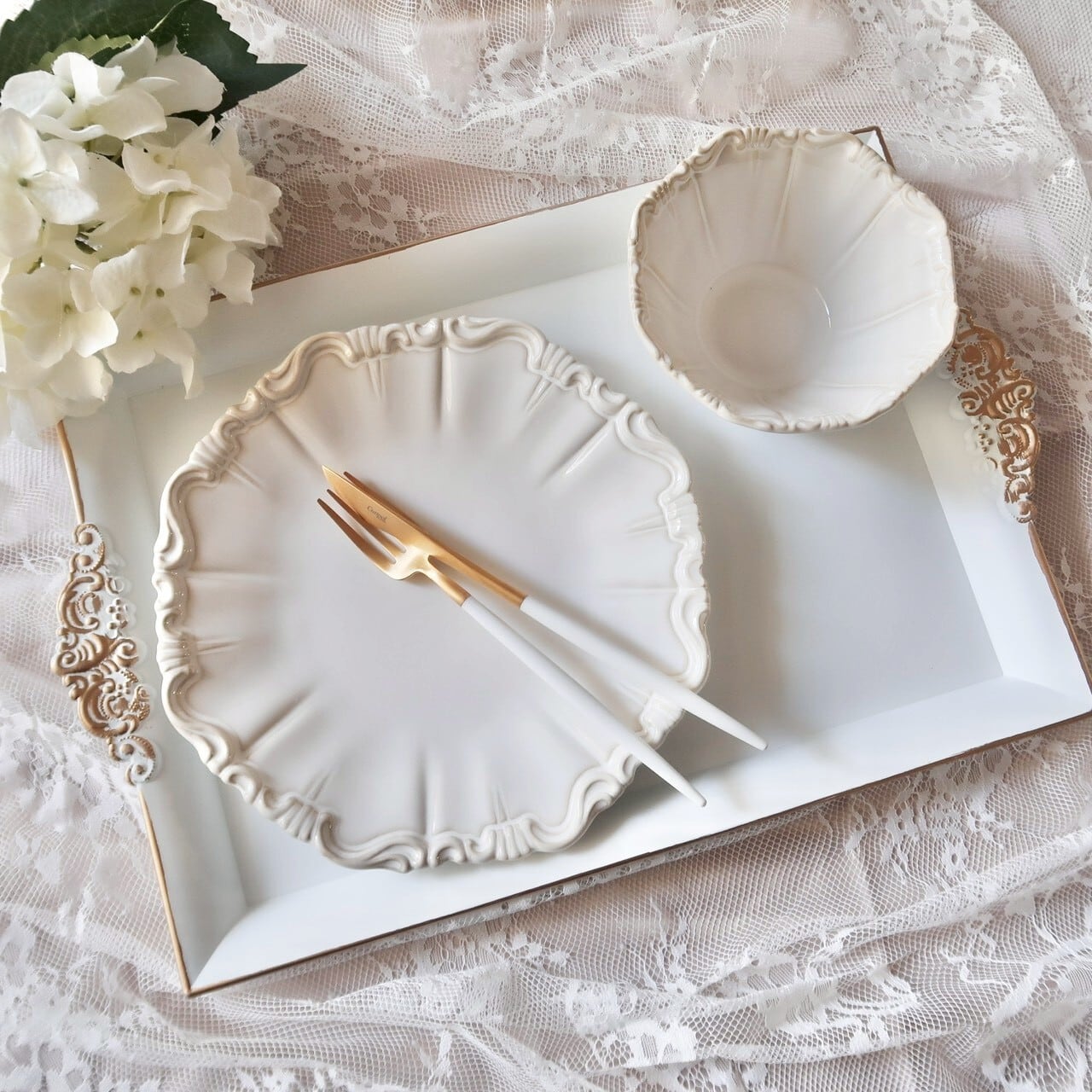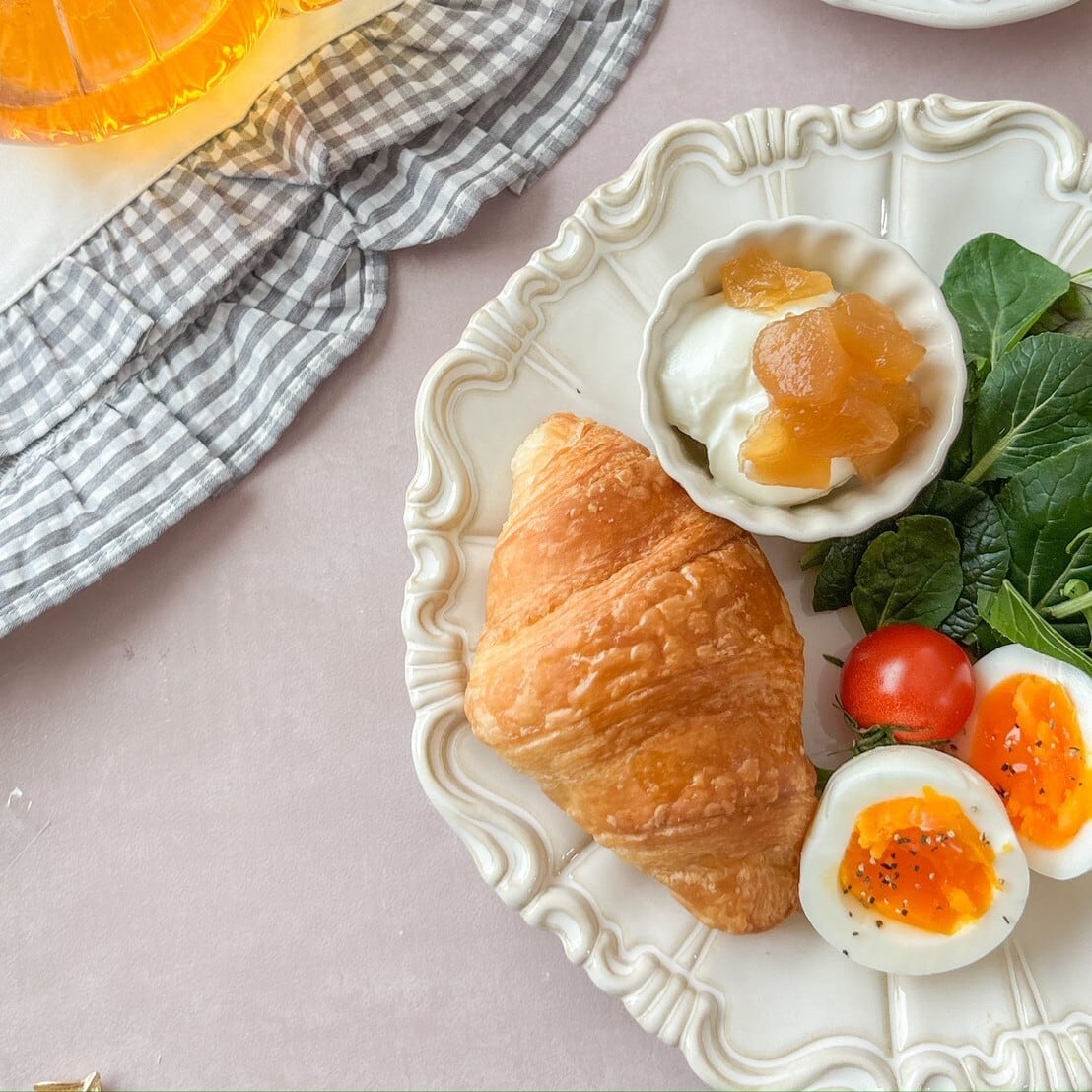 フレンチシックなオフホワイトカラーで、ジャンルを問わずどんなお料理にも合わせやすい食器です。