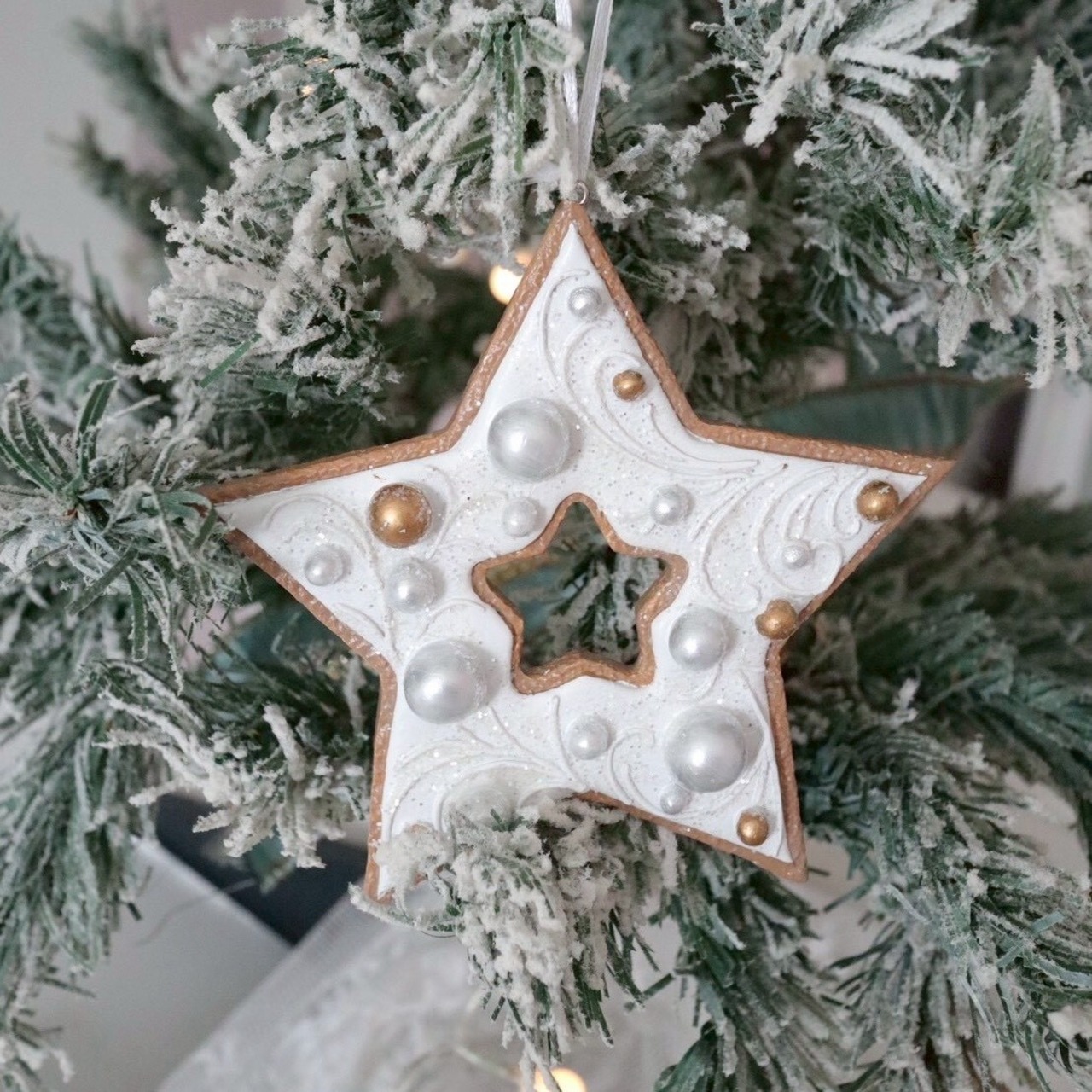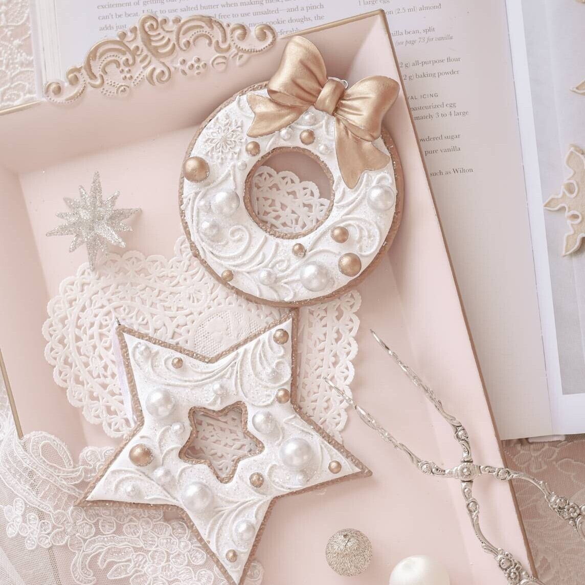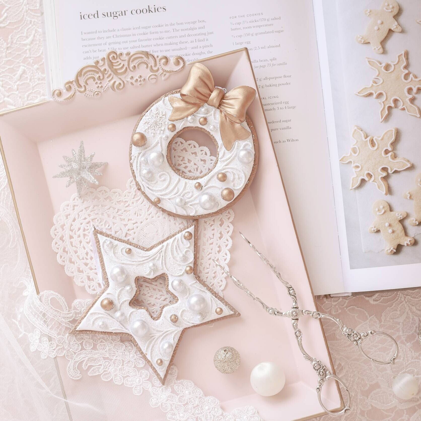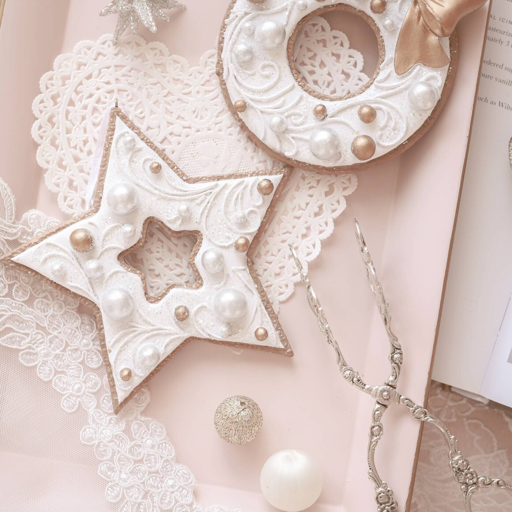 アイシングクッキーのようなデザインのおしゃれなジンジャーブレッドオーナメント。