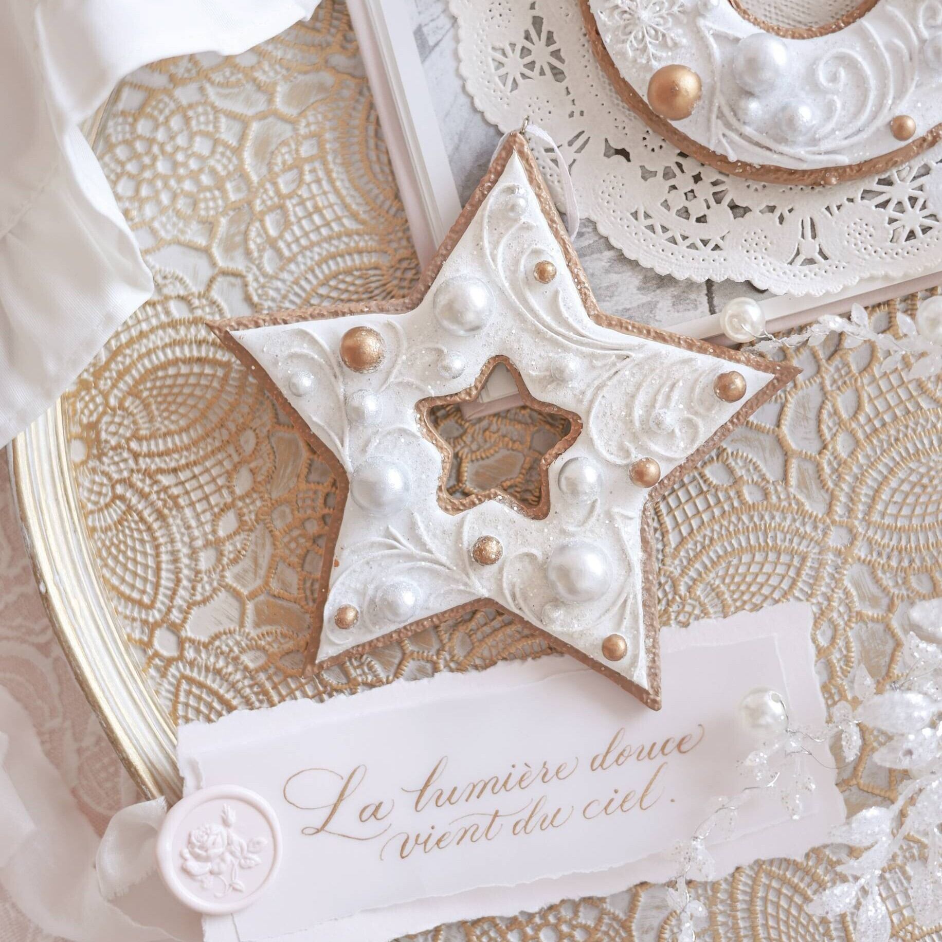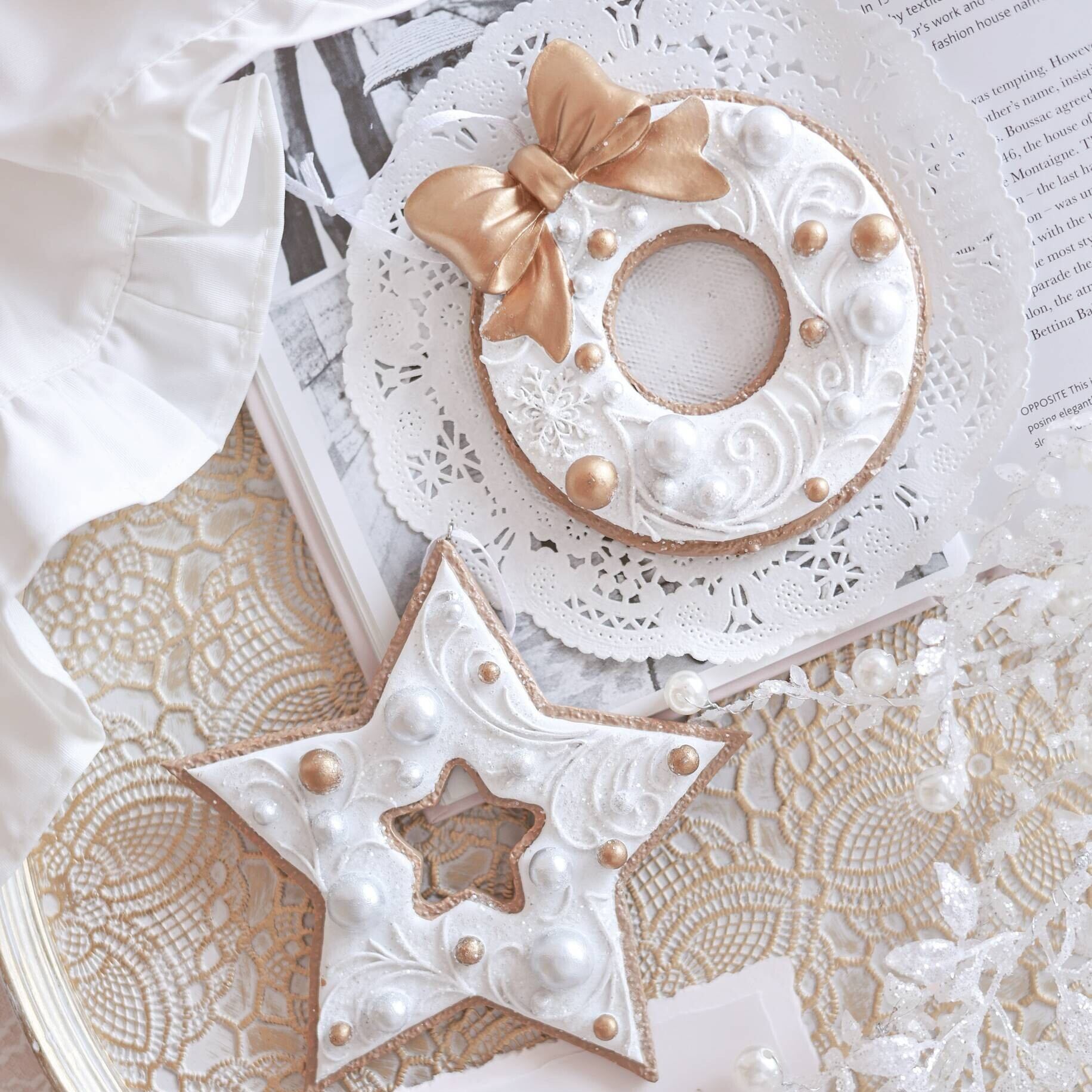 ホワイトとゴールドのコンビネーションが華やかで、クリスマスツリーによく映えます。