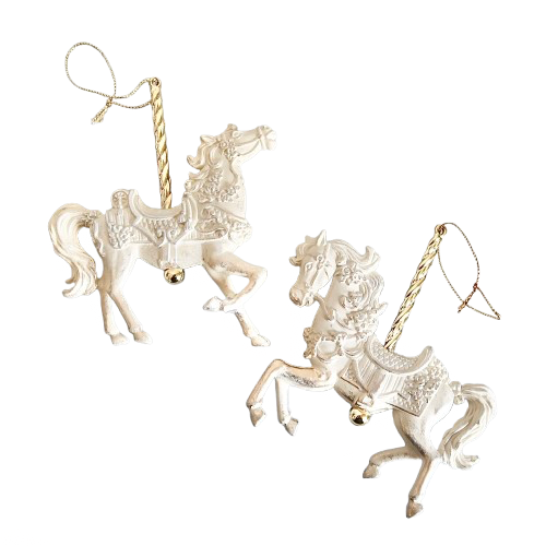 シャビーなホワイトカラーのカルーセルホースのオーナメント。