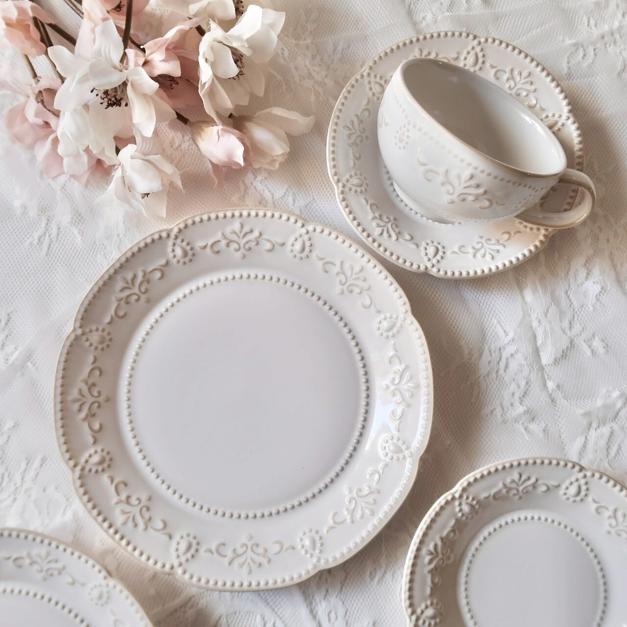 アンティーク調のおしゃれなレリーフが施されたお皿