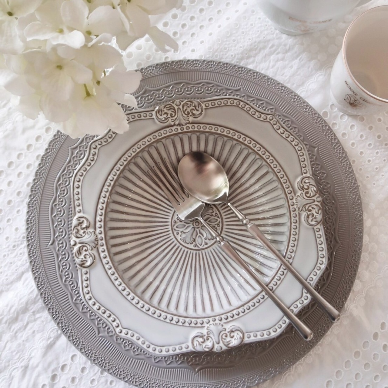 お皿の下に敷くアンダーディッシュとして使うと、シンプルなプレートに彩を添えて食卓を華やかにしてくれます。