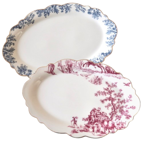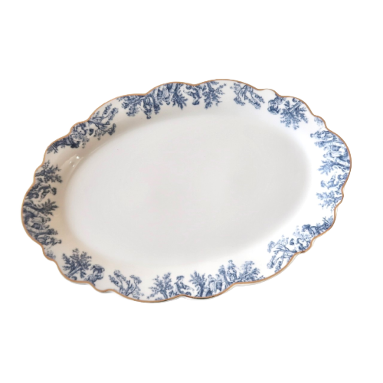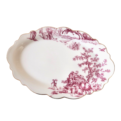上品な深みのあるカラーでヨーロッパの人々の生活をプリントしたトワルドジュイシリーズのオーバル型プレート。
