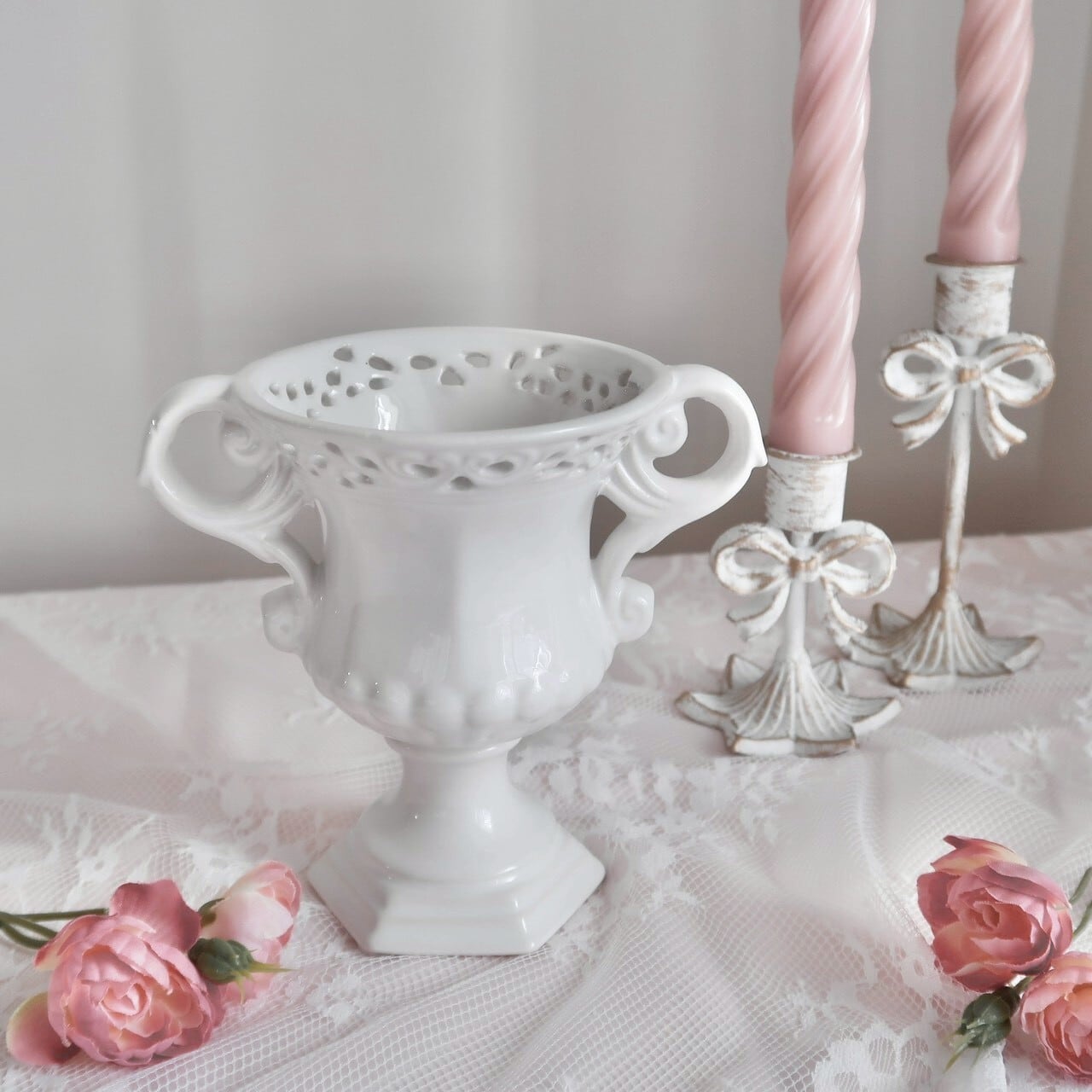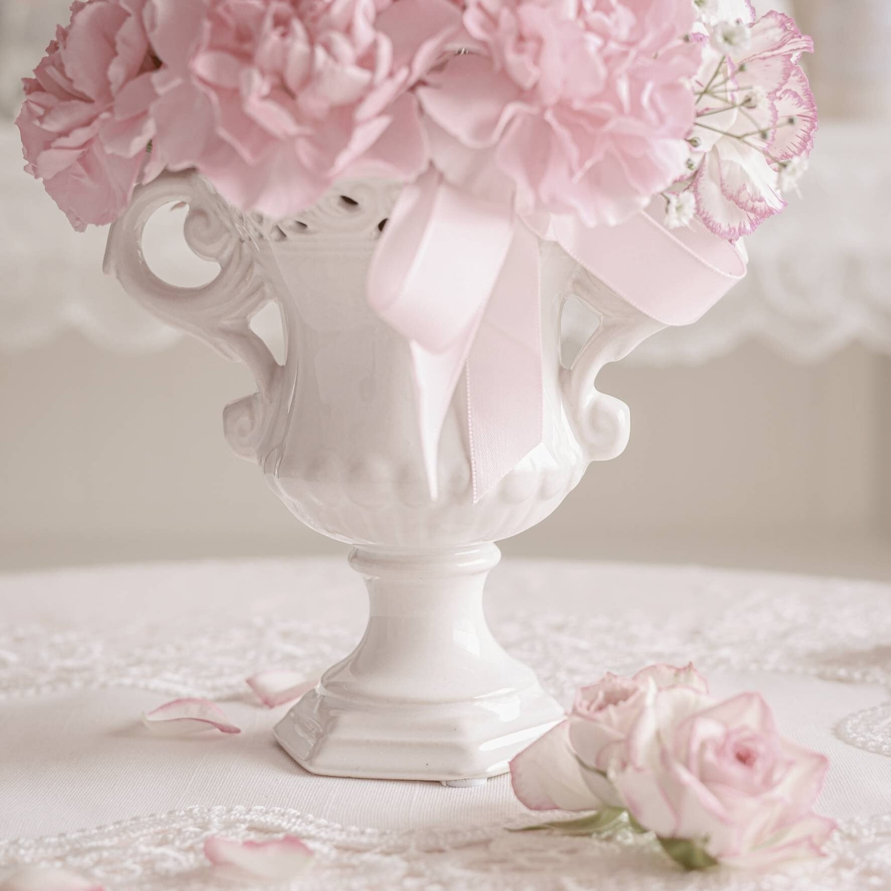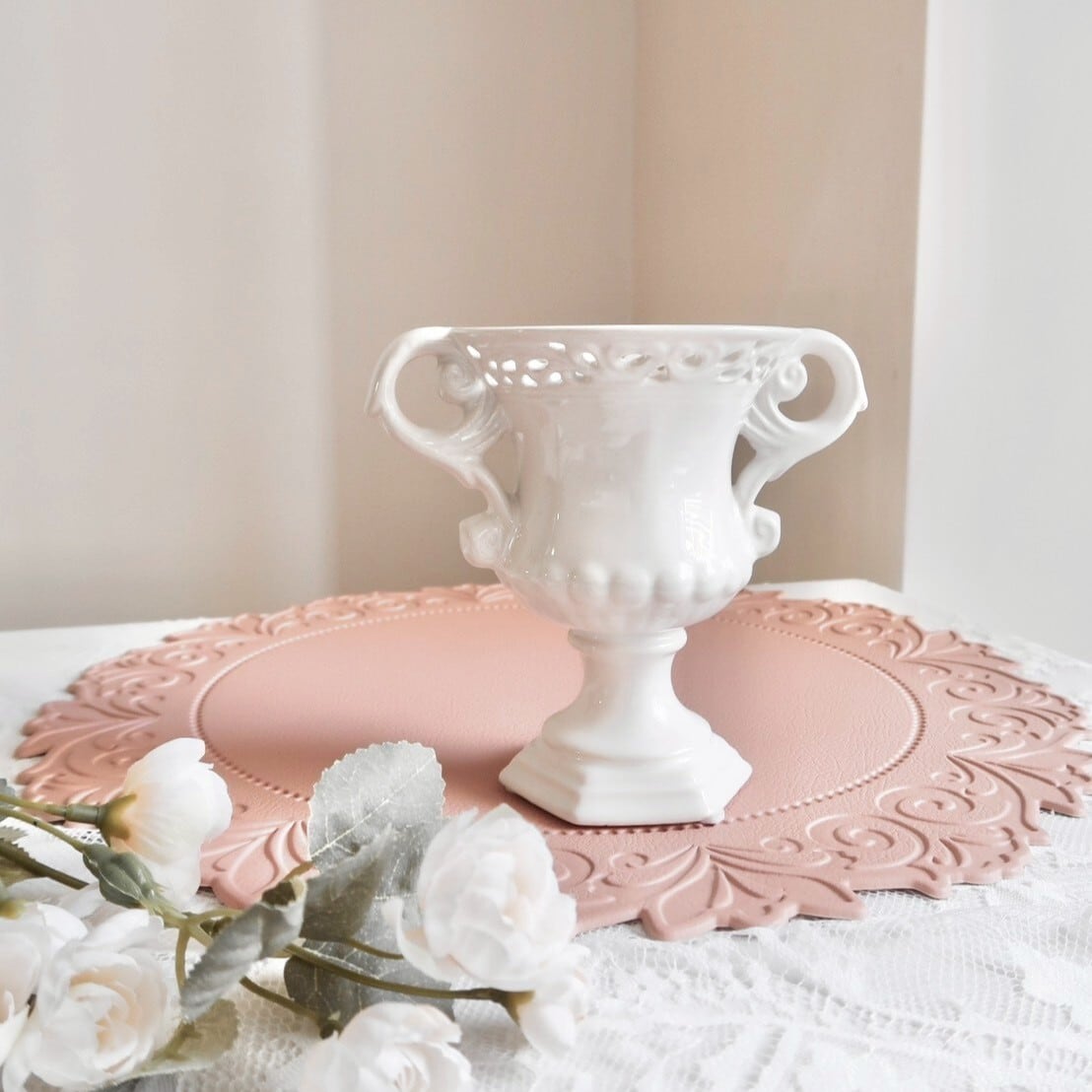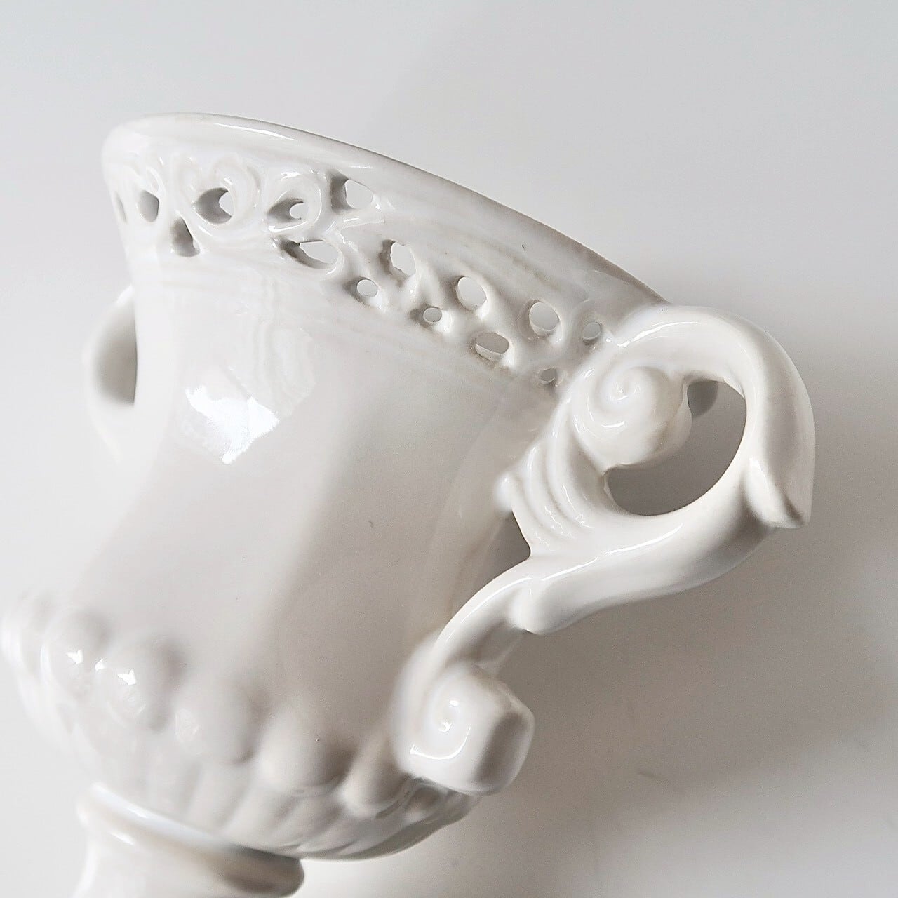 クラシカルなフォルムのかわいい陶器製のフラワーベース