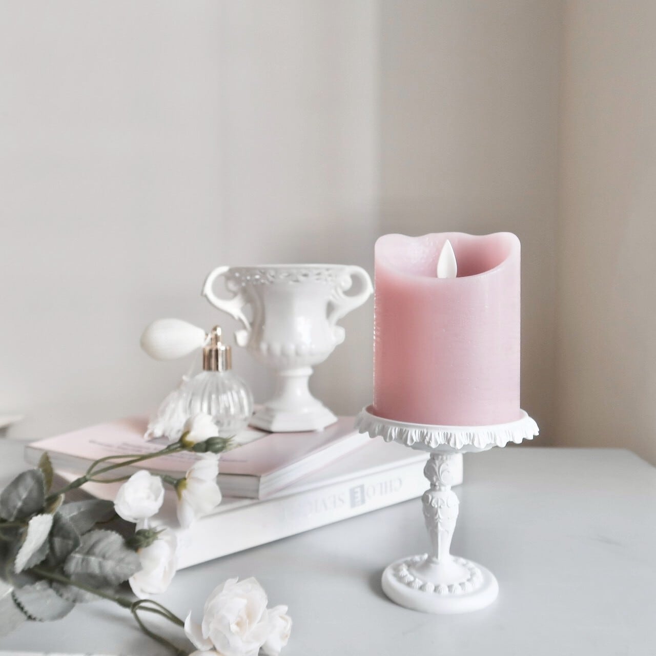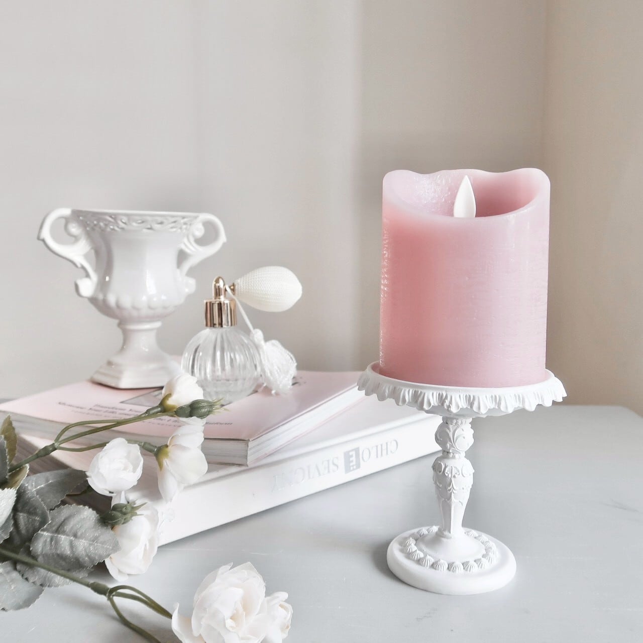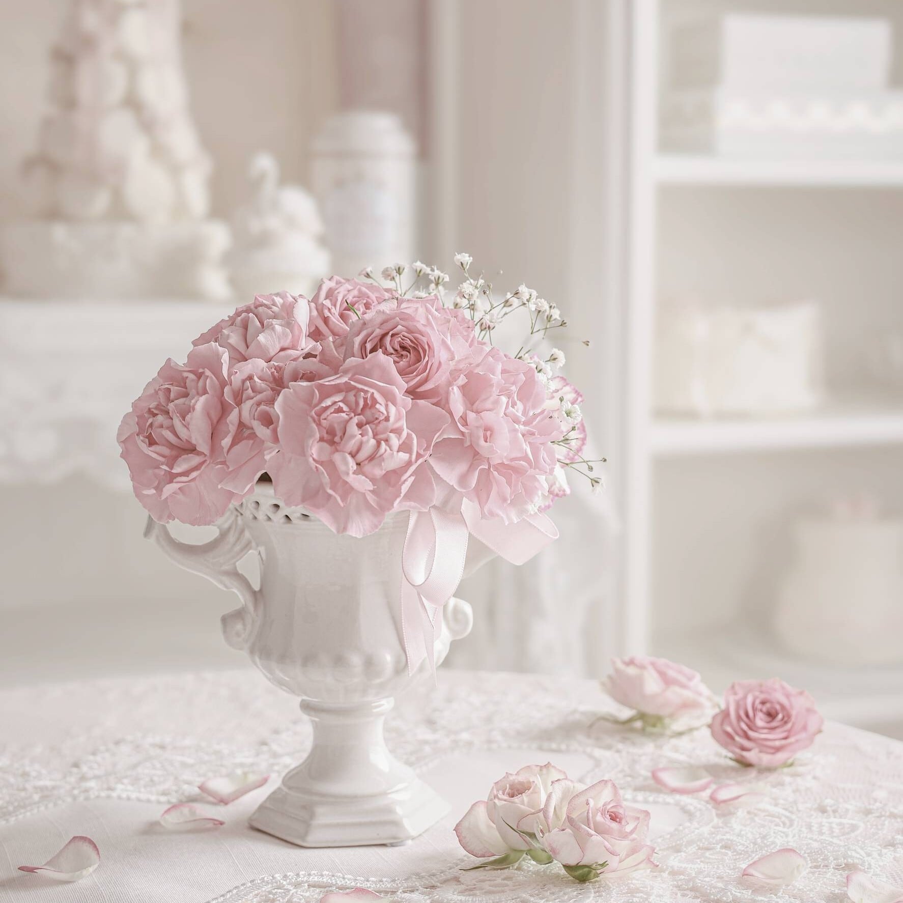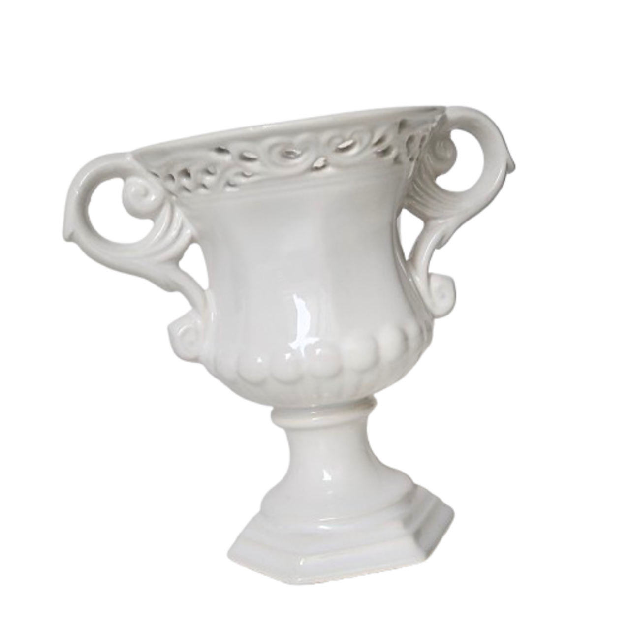 クラシカルなフォルムのかわいい陶器製のフラワーベース