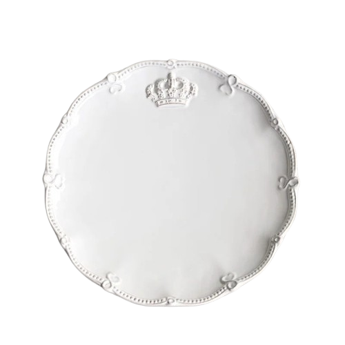 王冠のレリーフにドットの縁取りがおしゃれな陶器のプレート。