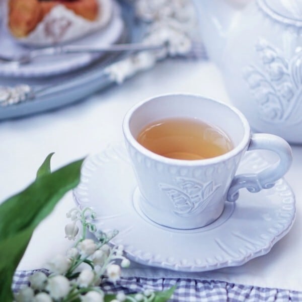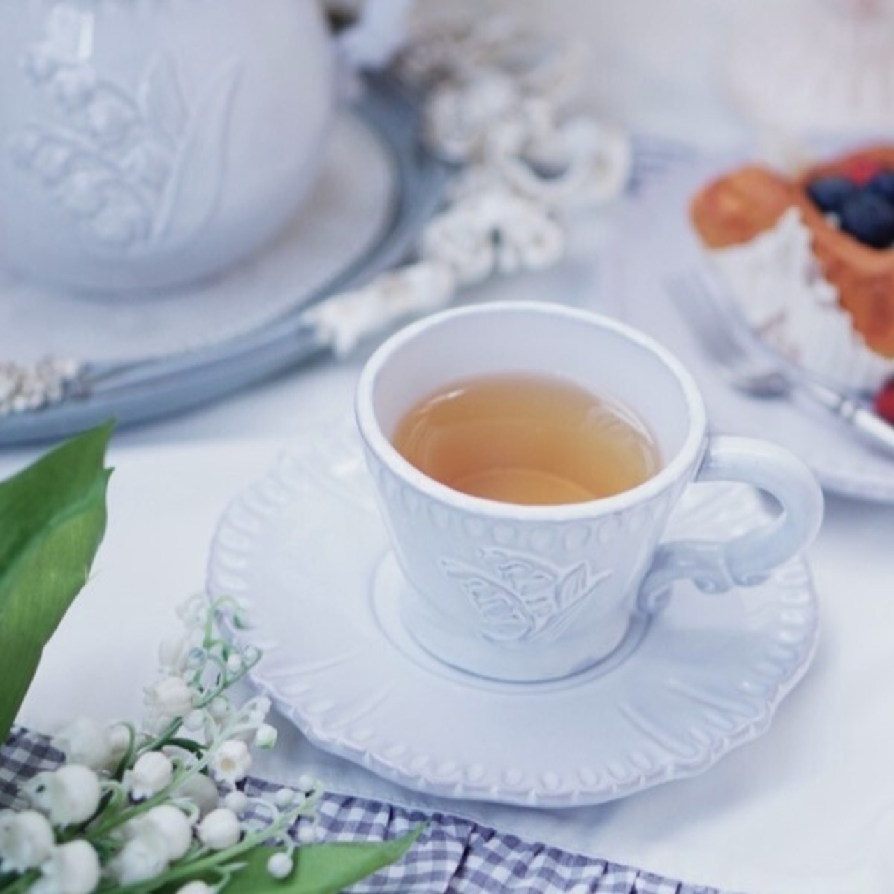 すずらんをモチーフにしたカップ&ソーサー。
