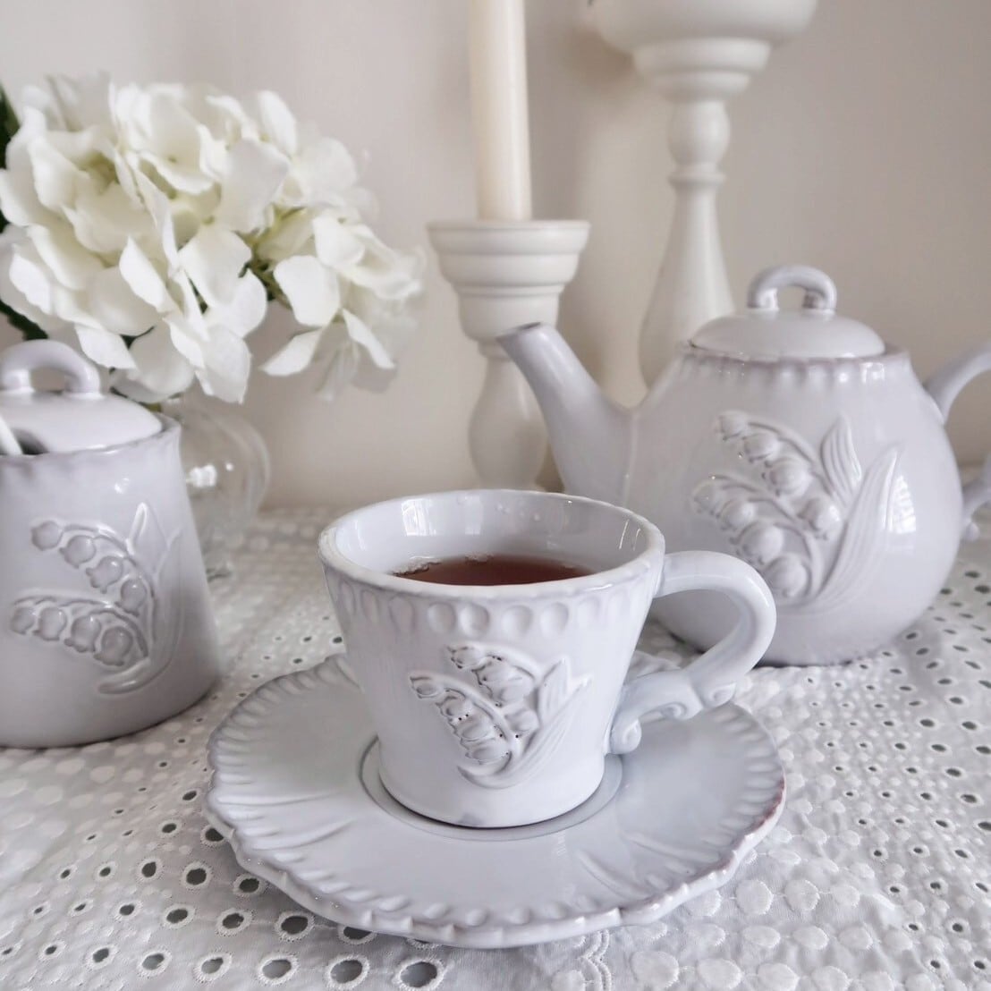 すずらんには幸せの再訪や純粋、謙虚などの花言葉があり、フランスでは、幸運のお花として大切な人へ贈る習慣があるそうです。贈り物などにもぴったりなモチーフです。