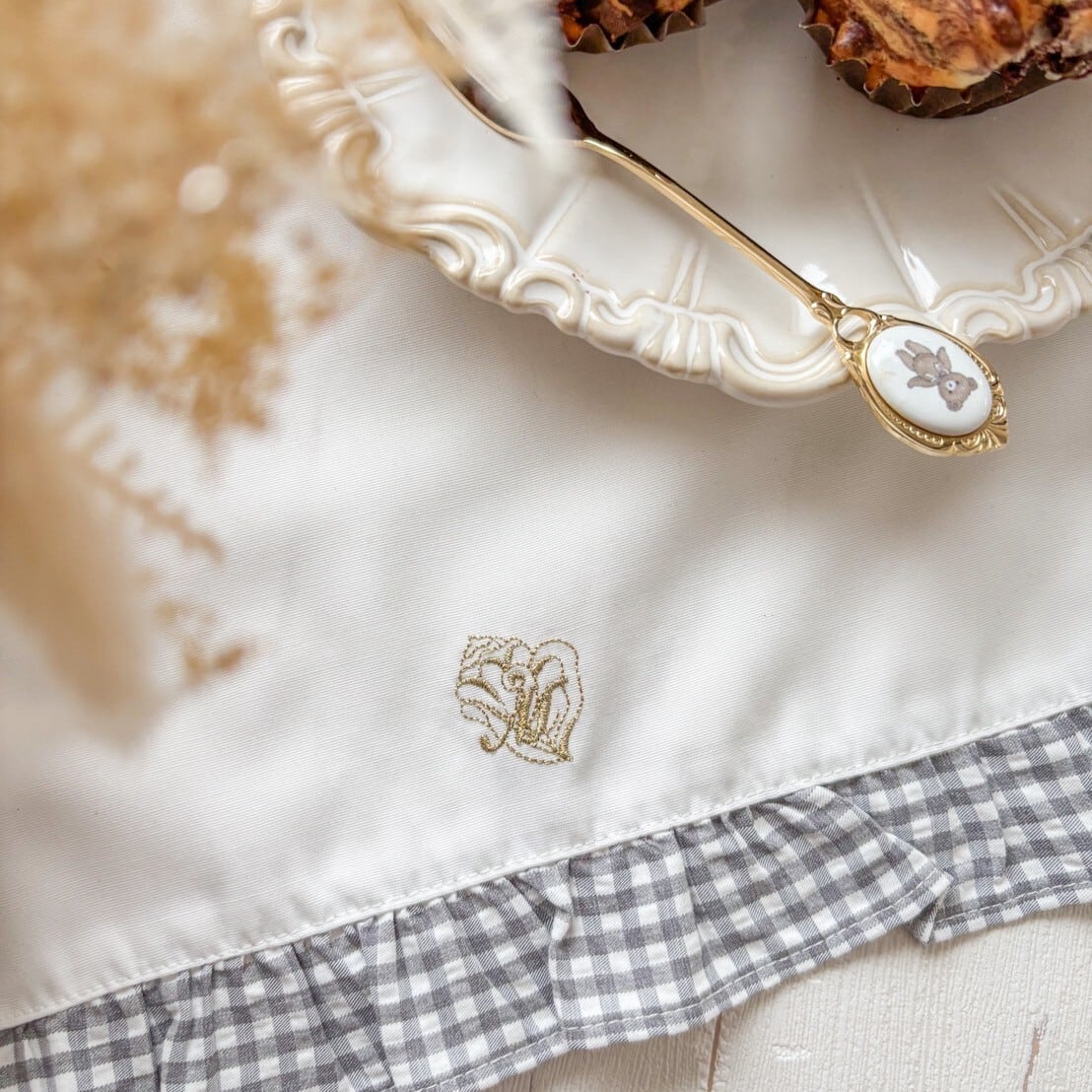 定番のフリル使いが可愛いランチョンマット。新作はチェックのフリルでバイカラーに仕上げました。