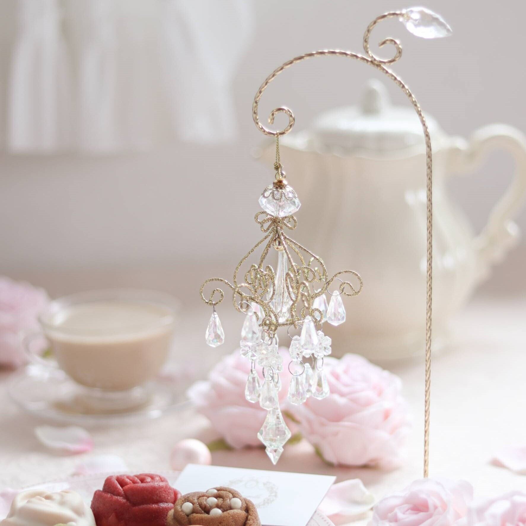 ワイヤー製のシンプルなデザインに、ドロップ型の飾りがアクセントになっています。