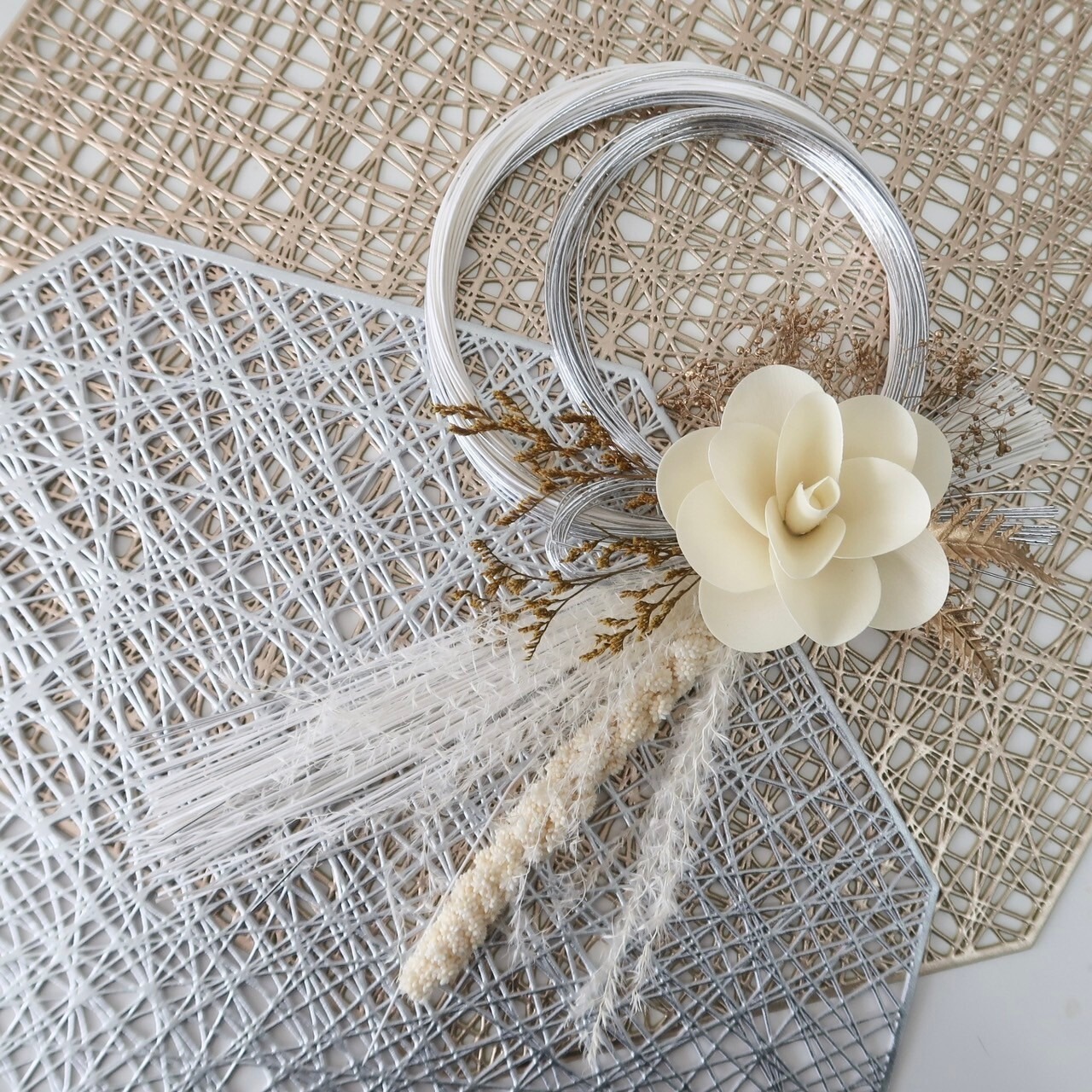 本物のドライフラワーをあしらったナチュラルな "しめ縄" です。