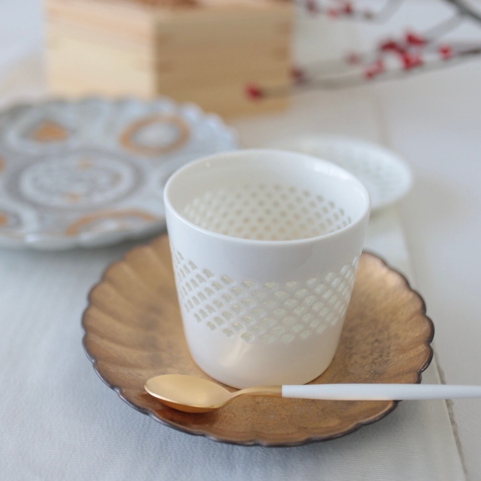 蛍手という技法を用いた透かしが美しいマルチカップ。
