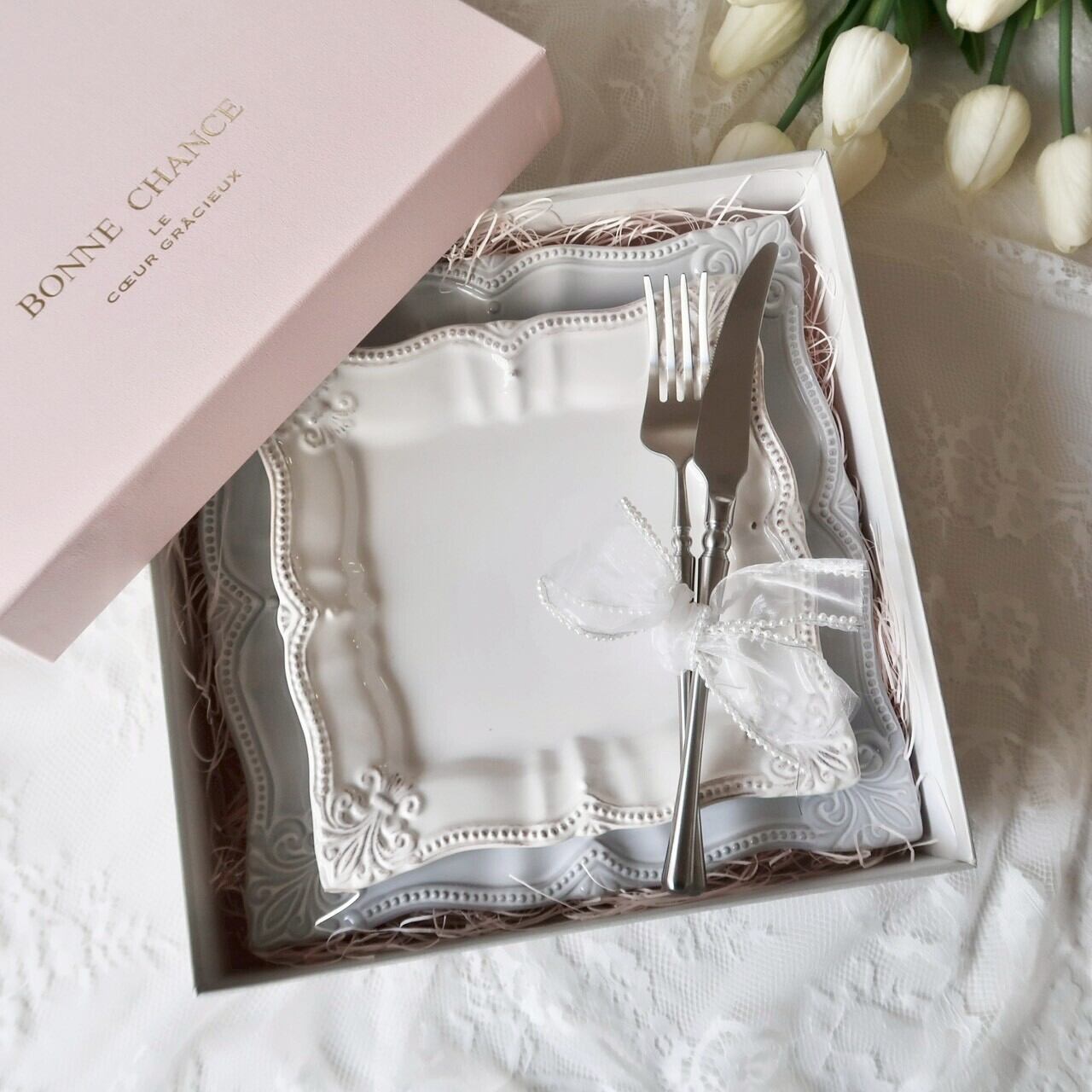 【GIFT】スクエアレースディッシュ + ディナーナイフ&フォーク
